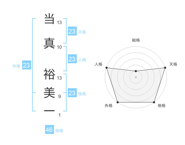 当真 裕美一さんの天格は23画の5点