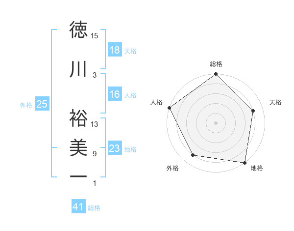 徳川 裕美一さんを姓名の画数から五運を鑑定