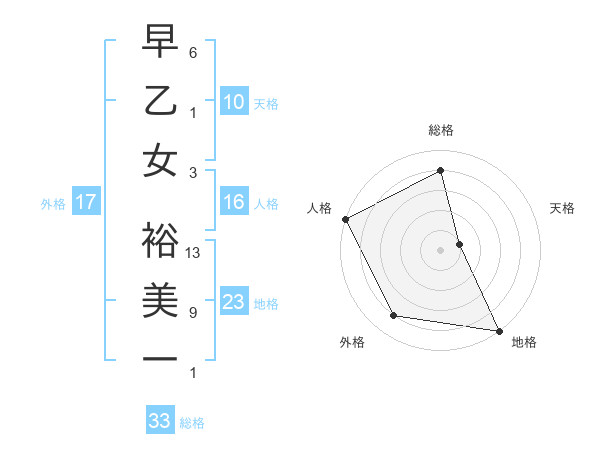 早乙女 裕美一さんを姓名の画数から五運を鑑定