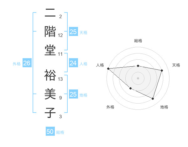二階堂 裕美子さんの総格は50画の2点!