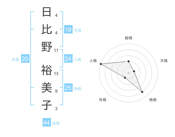 日比野 裕美子さんを姓名の画数から五運を鑑定