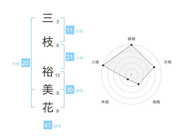 三枝 裕美花さんの総格は41画の5点!