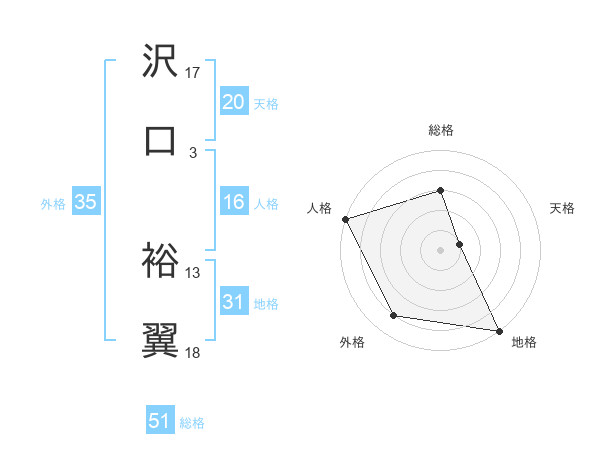 沢口 裕翼さんを姓名の画数から五運を鑑定