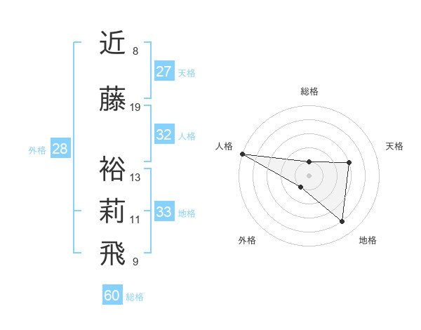近藤 裕莉飛さんの総格は60画の1点