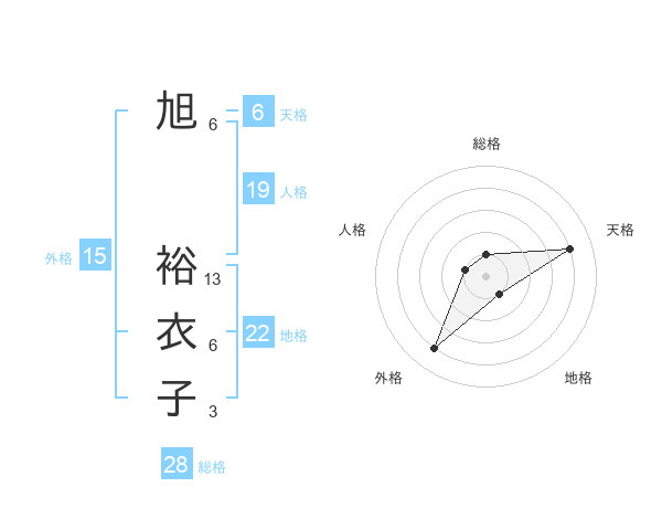 旭 裕衣子さんの総格は28画の1点!