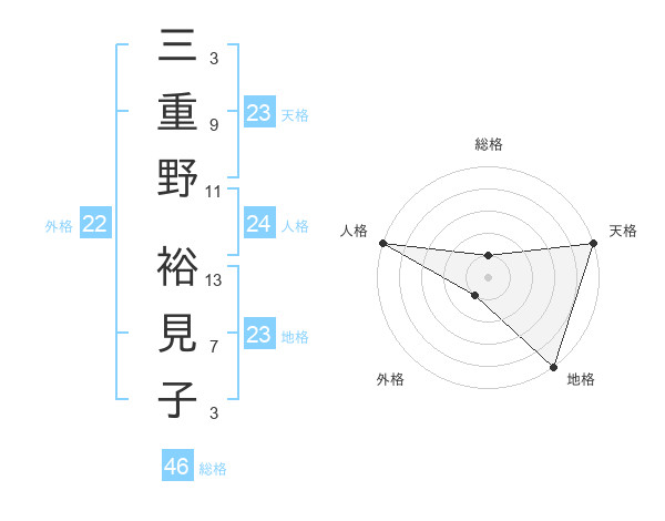 三重野 裕見子さんの天格は23画の5点!