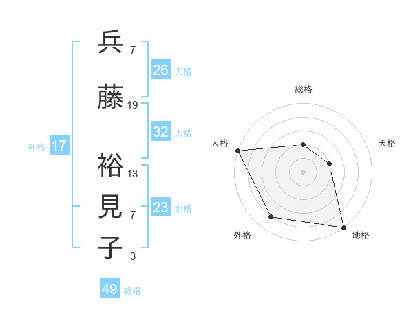 兵藤 裕見子さんを姓名の画数から五運を鑑定
