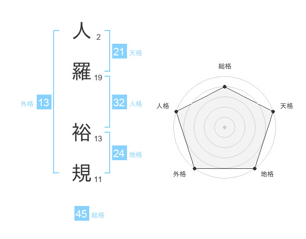 人羅 裕規さんの総格は45画の4点!