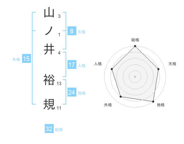 山ノ井 裕規さんを姓名の画数から五運を鑑定