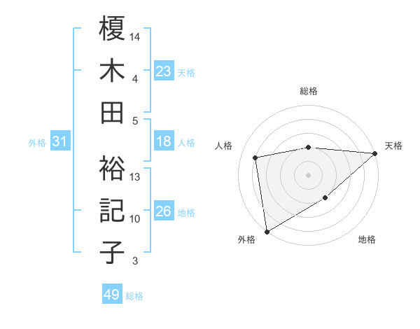 榎木田 裕記子さんを姓名の画数から五運を鑑定