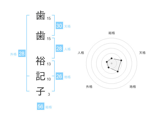歯歯 裕記子さんを姓名の画数から五運を鑑定