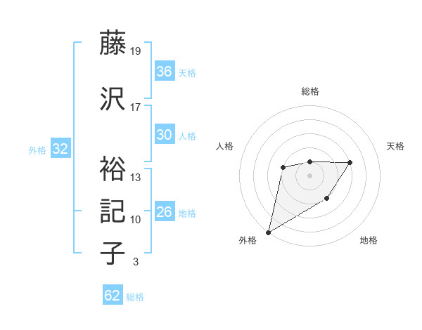 藤沢 裕記子さんを姓名の画数から五運を鑑定
