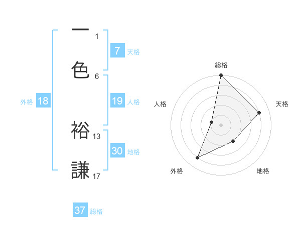 一色 裕謙さんの総格は37画の5点!