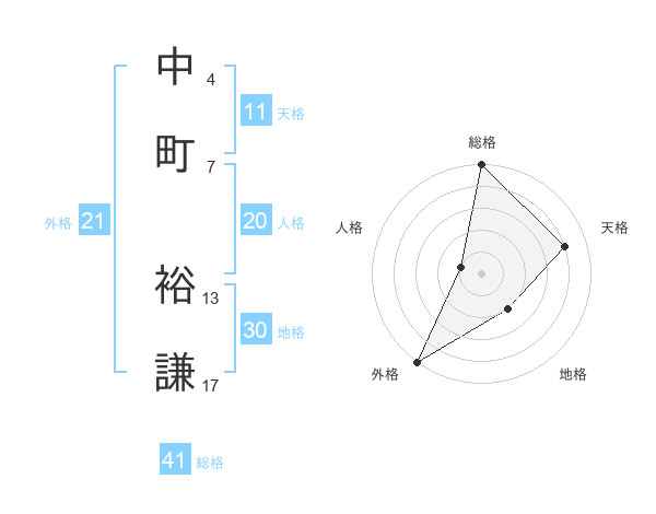 中町 裕謙さんを姓名の画数から五運を鑑定