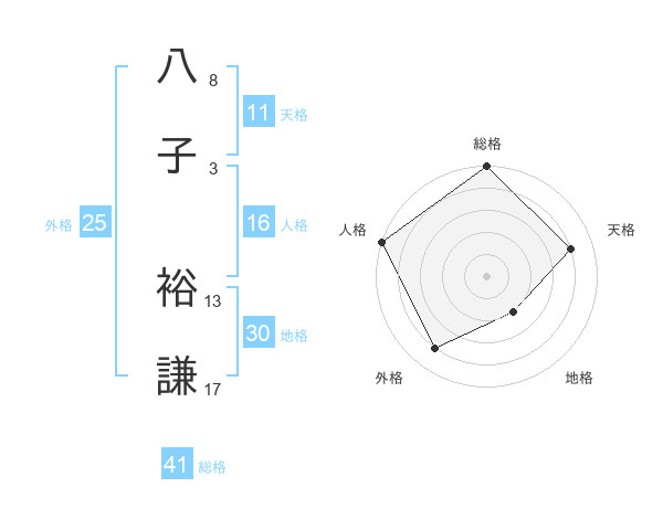 八子 裕謙さんを姓名の画数から五運を鑑定