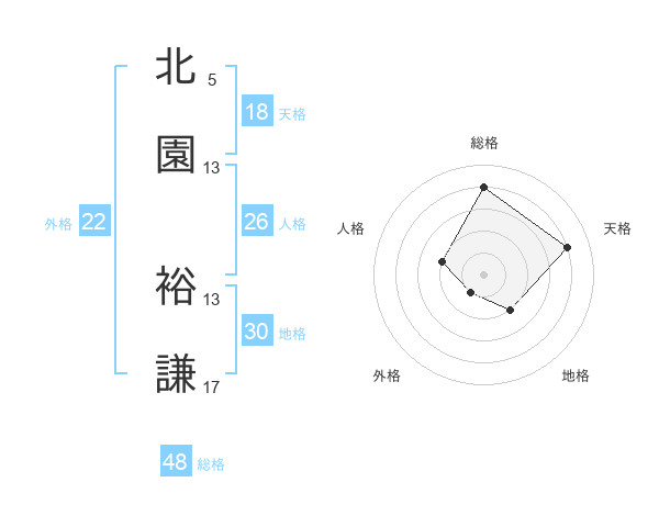北園 裕謙さんの総格は48画の4点!