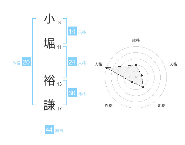 小堀 裕謙さんの総格は44画の2点!