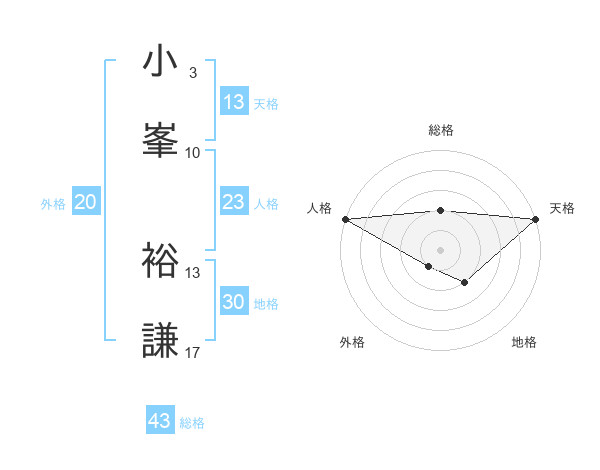 小峯 裕謙さんを姓名の画数から五運を鑑定