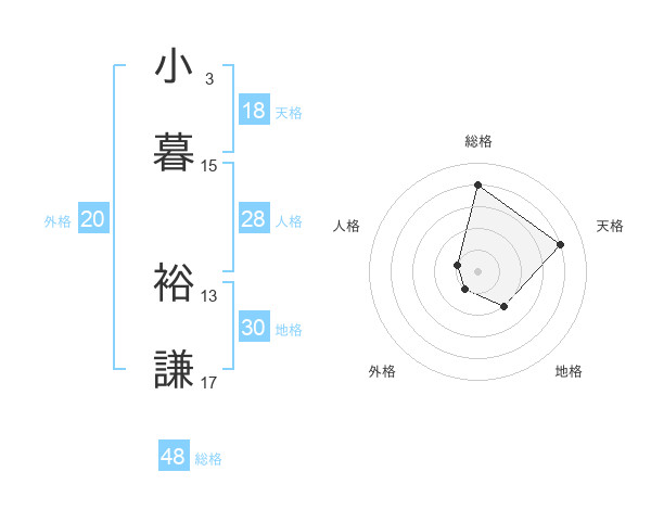 小暮 裕謙さんの総格は48画の4点!