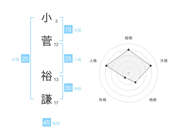 小菅 裕謙さんの総格は45画の4点!