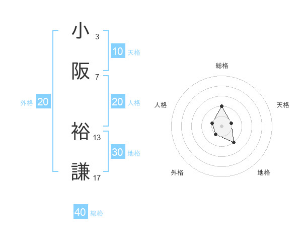 小阪 裕謙さんを姓名の画数から五運を鑑定