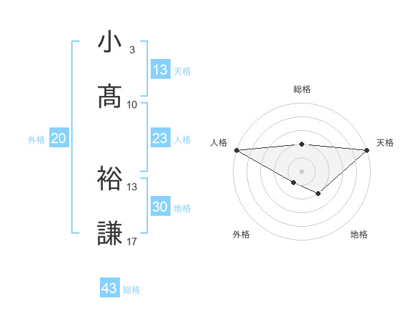 小髙 裕謙さんの天格は13画の5点!