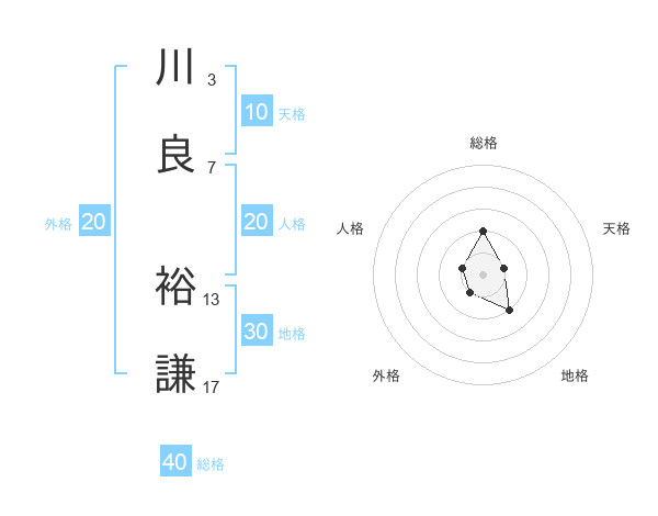 川良 裕謙さんを姓名の画数から五運を鑑定