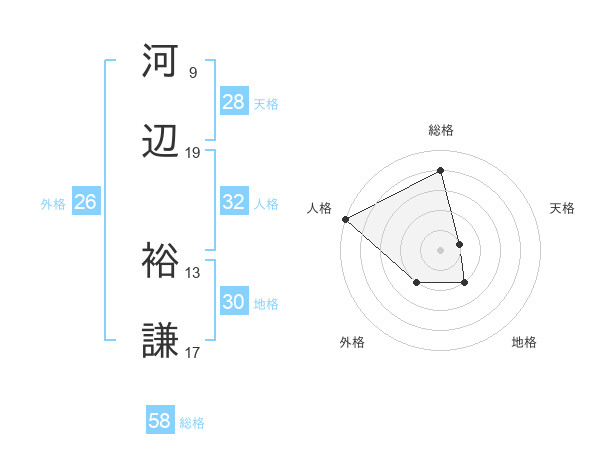 河辺 裕謙さんを姓名の画数から五運を鑑定