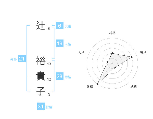 辻 裕貴子さんの外格は21画の5点!