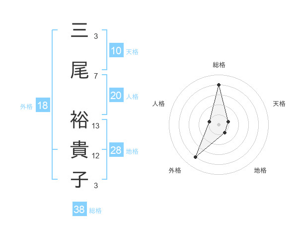 三尾 裕貴子さんを姓名の画数から五運を鑑定