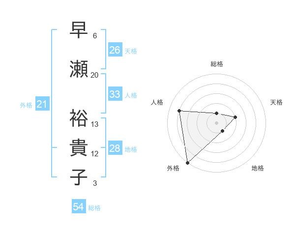 早瀬 裕貴子さんの天格は26画の2点!