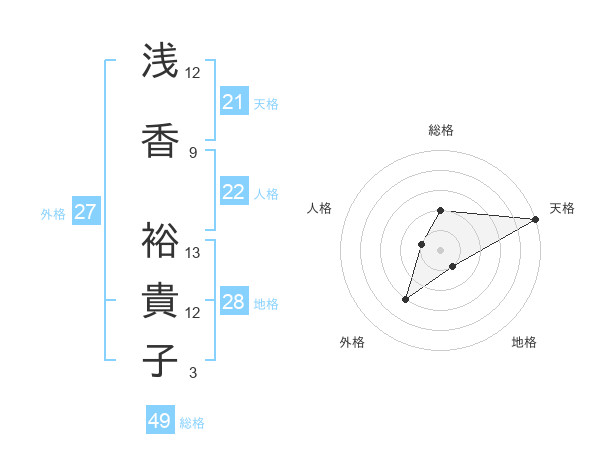 浅香 裕貴子さんを姓名の画数から五運を鑑定
