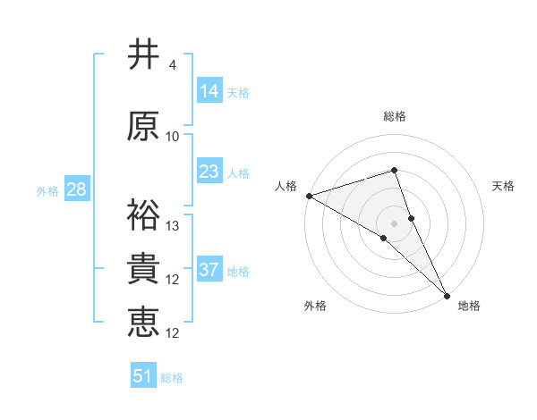 井原 裕貴恵さんを姓名の画数から五運を鑑定