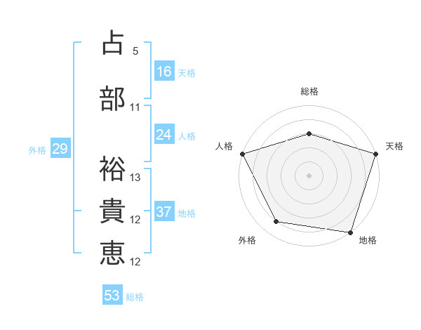 占部 裕貴恵さんの総格は53画の3点!
