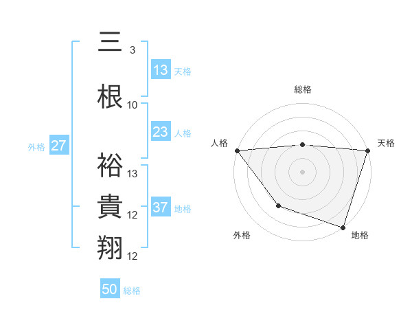 三根 裕貴翔さんの総格は50画の2点!