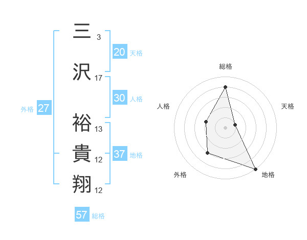 三沢 裕貴翔さんを姓名の画数から五運を鑑定