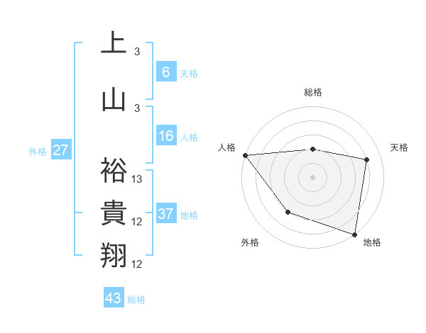 上山 裕貴翔さんの総格は43画の2点