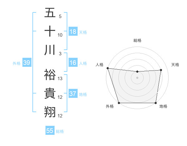 五十川 裕貴翔さんの総格は55画の1点!