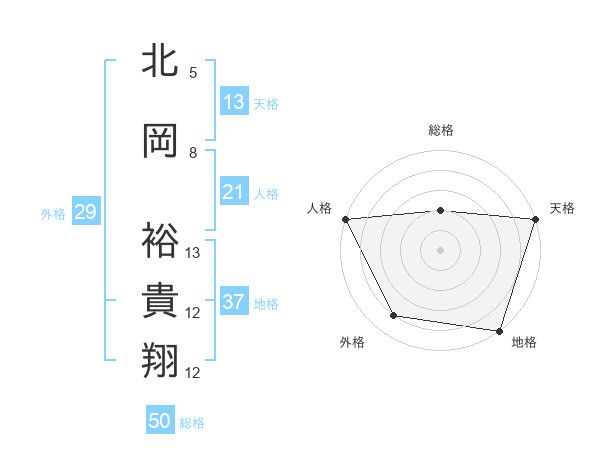 北岡 裕貴翔さんの総格は50画の2点!