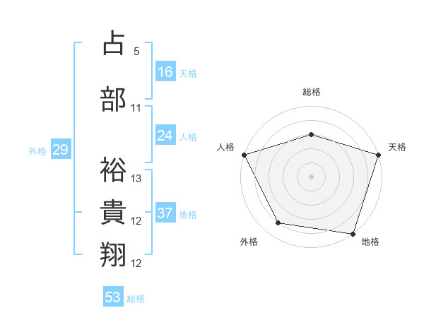 占部 裕貴翔さんを姓名の画数から五運を鑑定