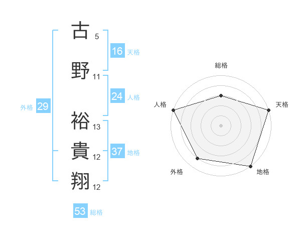 古野 裕貴翔さんの総格は53画の3点!