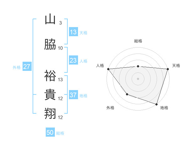 山脇 裕貴翔さんの天格は13画の5点!
