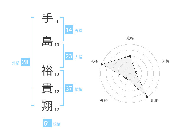 手島 裕貴翔さんを姓名の画数から五運を鑑定