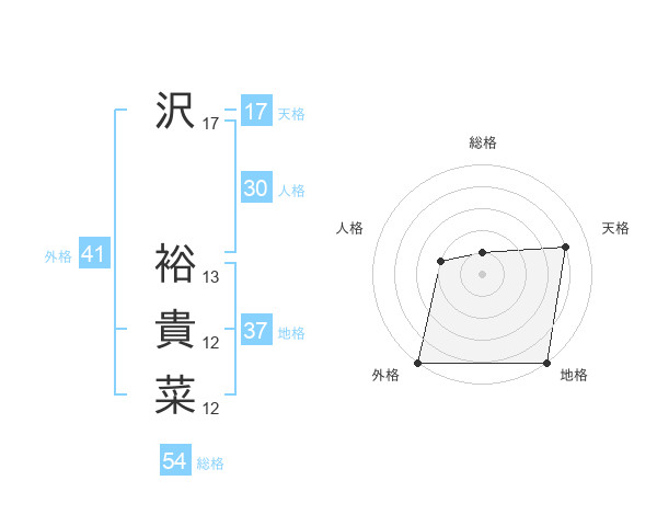沢 裕貴菜さんの外格は41画の5点!