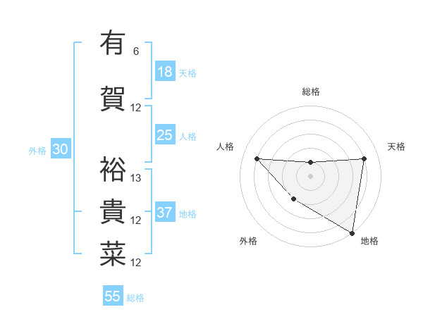 有賀 裕貴菜さんを姓名の画数から五運を鑑定