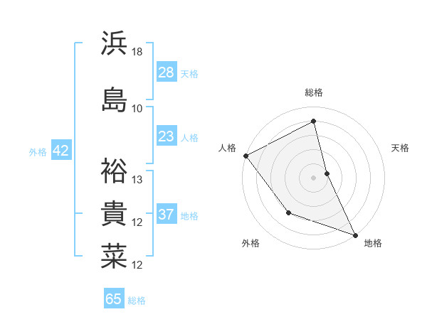 浜島 裕貴菜さんの総格は65画の4点!