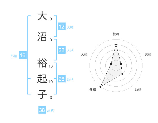 大沼 裕起子さんの総格は38画の4点!