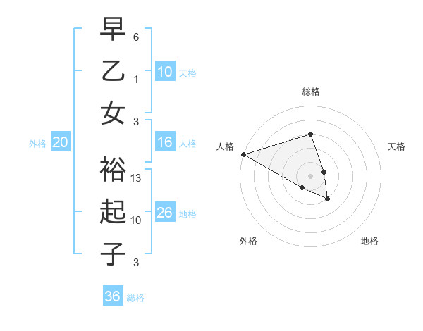 早乙女 裕起子さんの総格は36画の3点!