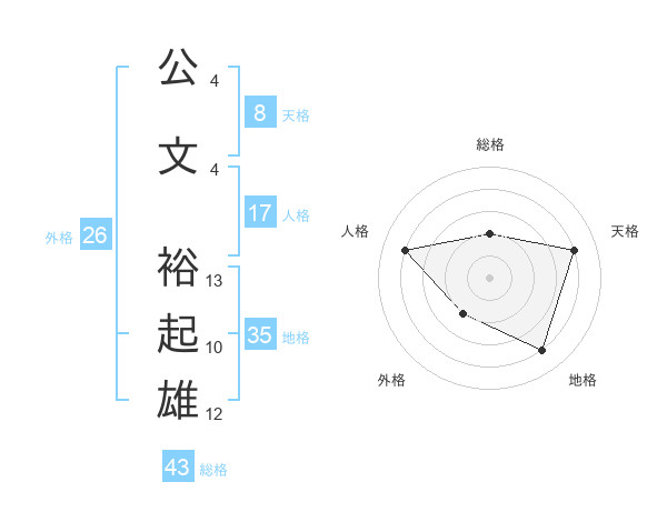 公文 裕起雄さんの総格は43画の2点!