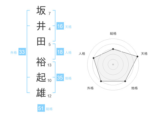 坂井田 裕起雄さんを姓名の画数から五運を鑑定